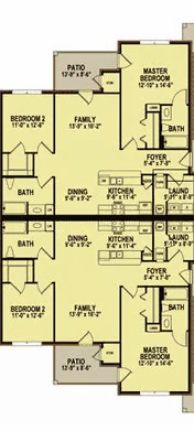- Square footage for each unit is 1,218 and includes a walk-in closet in bedroom 2 and a laundry room for each unit.